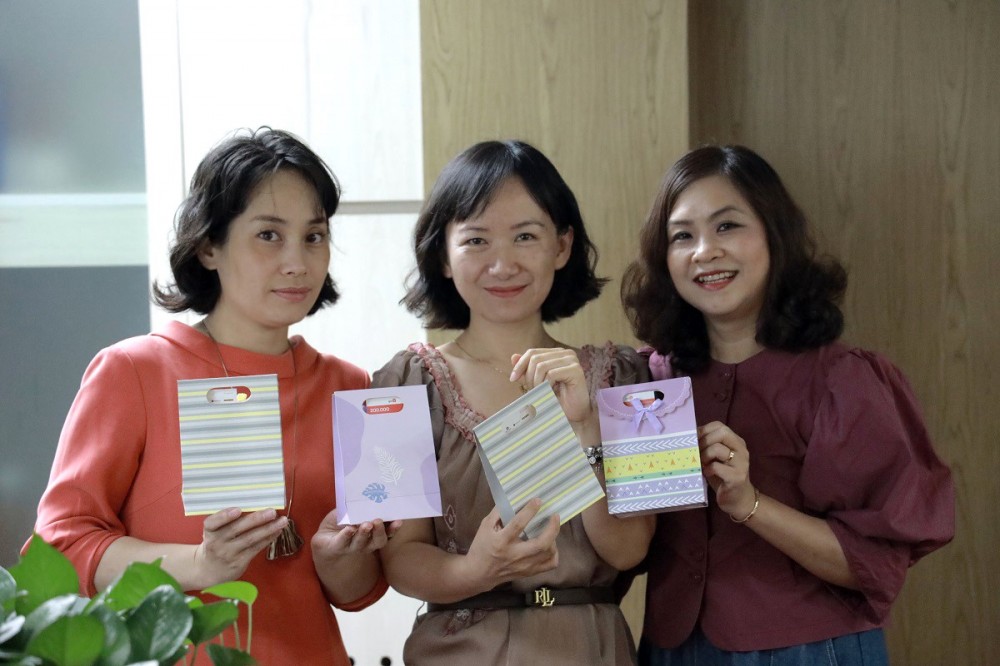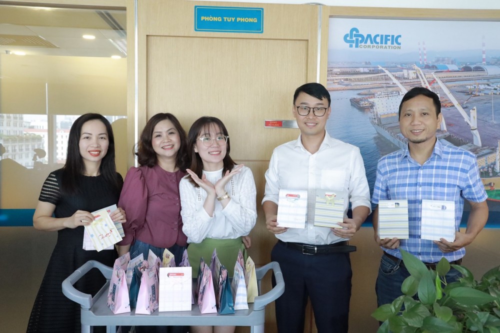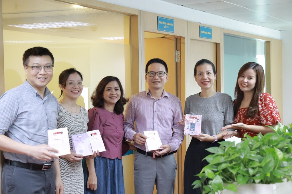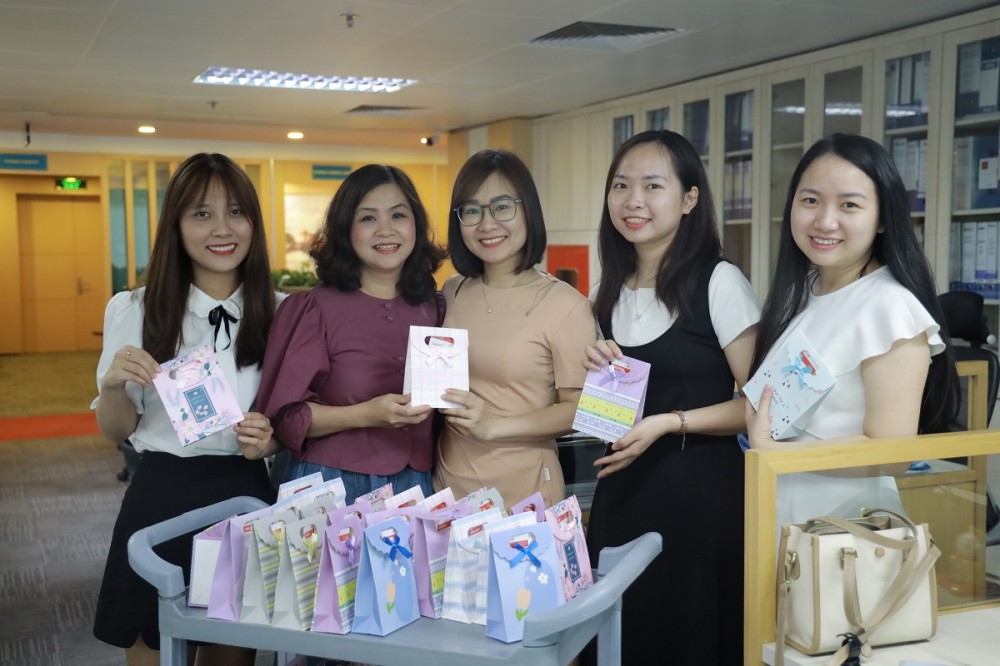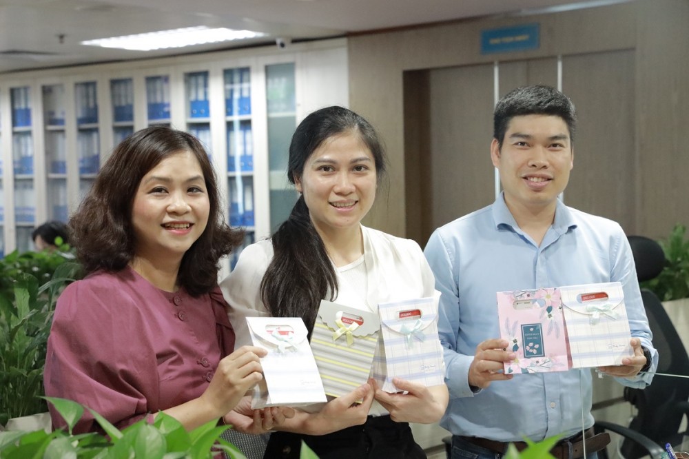 Chị Nguyễn Thị Toàn - Chủ tịch Công đoàn thay mặt Ban lãnh đạo tặng quà 1/6 tới đại diện từng phòng/ ban tại Trụ sở chính Tập đoàn