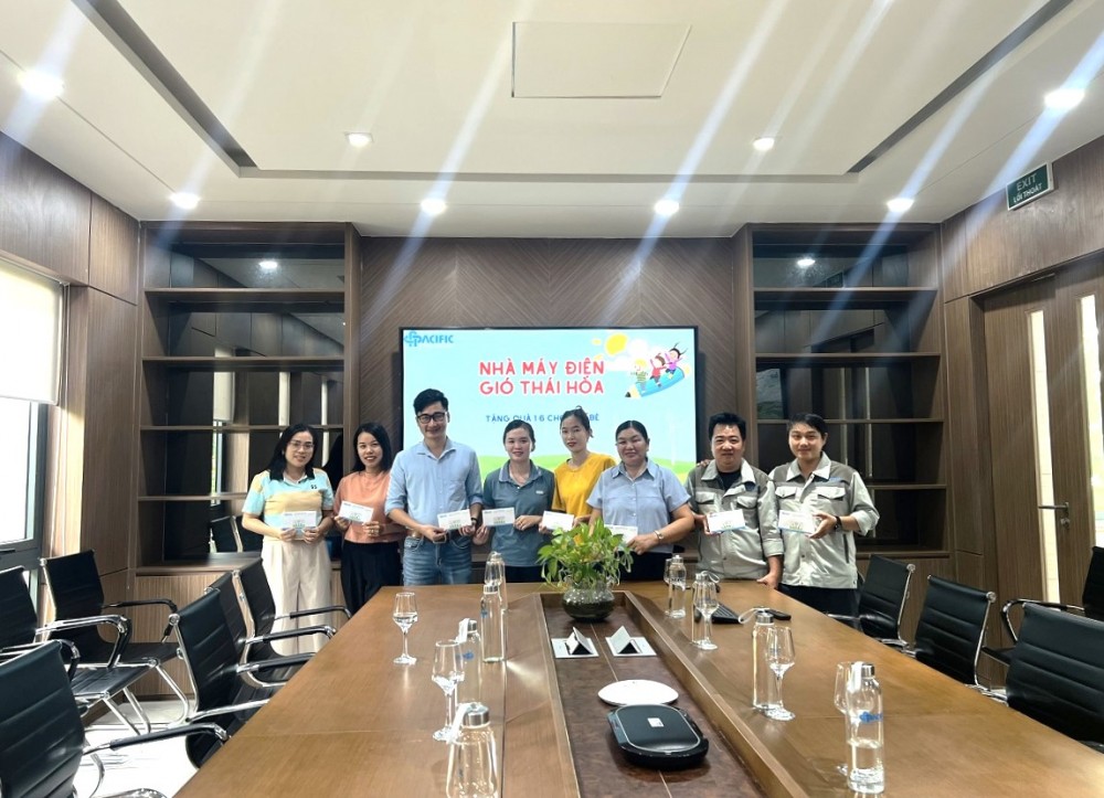 Đại diện BLĐ trao quà 1/6 tại Nhà máy điện gió Thái Hòa