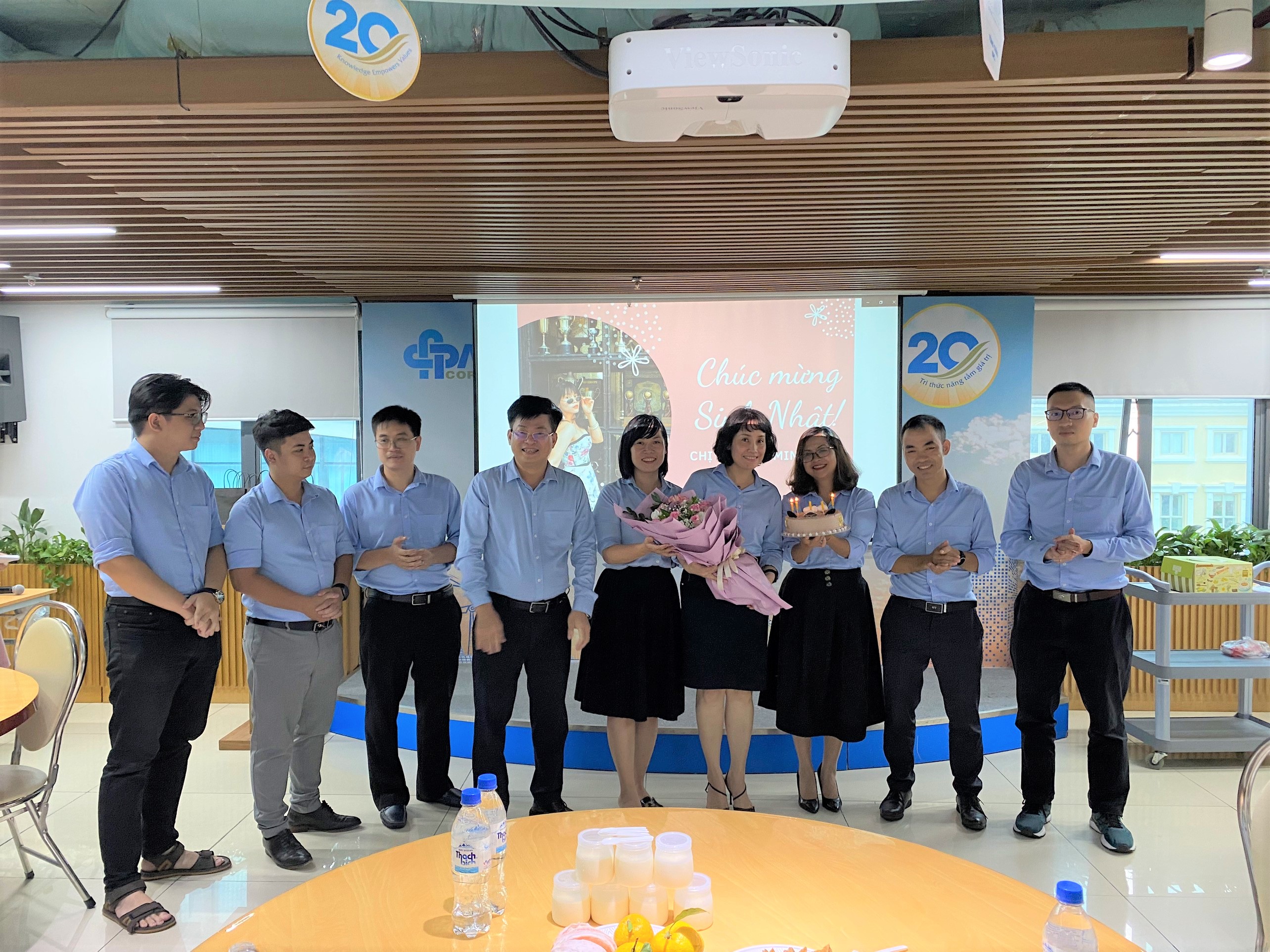 Chị Nguyễn Thị Toàn - Chủ tịch Công đoàn và anh Nghiêm Xuân Hùng - TGĐ Khối Nội chính chúc mừng sinh nhật các CBNV