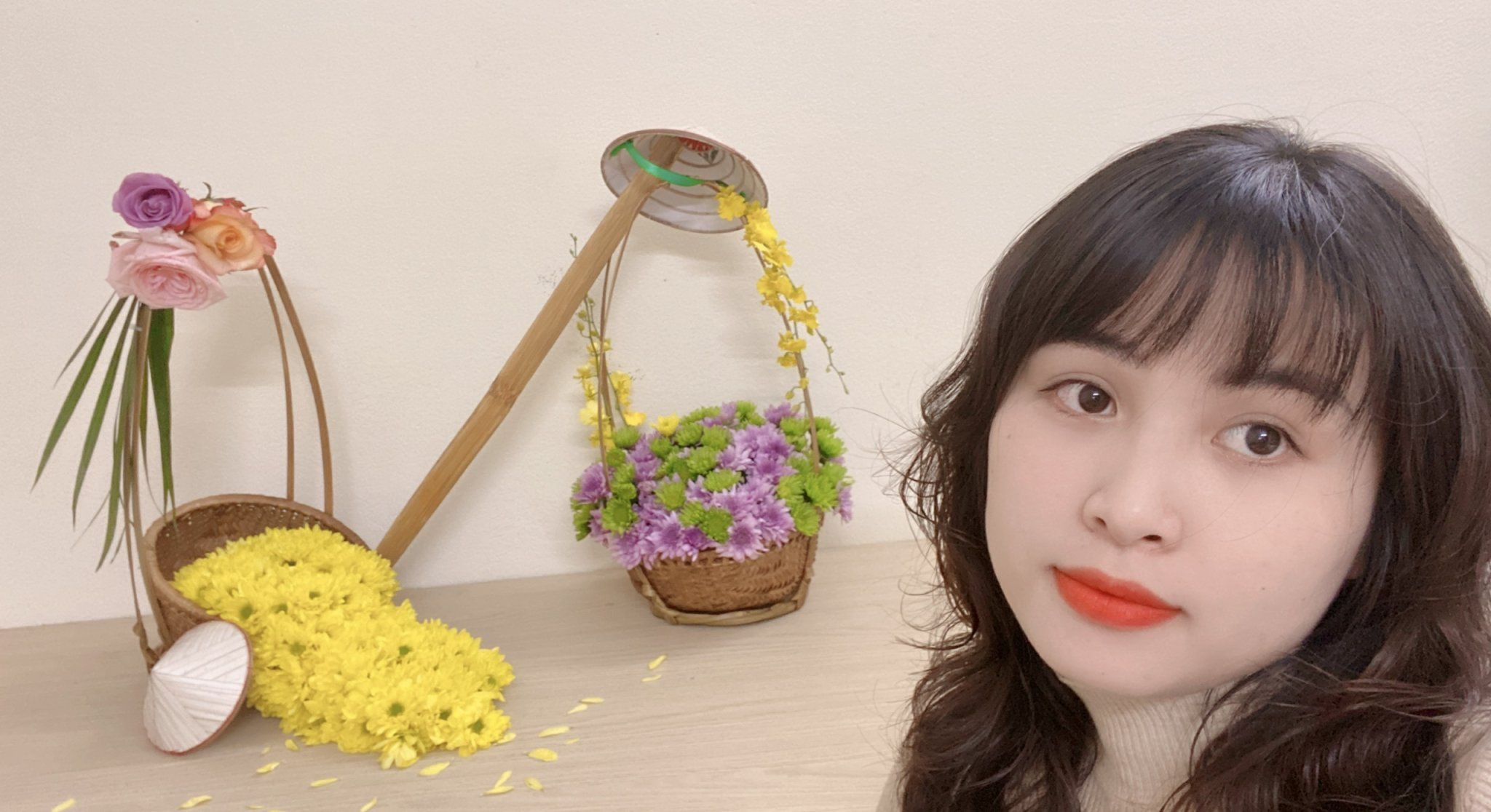 Thí sinh Phạm Thị Hồng Vân và Nguyễn Thị Bình Giang, Phòng PTDA và DTKD, tác phẩm “Sắc xuân”