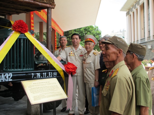 AHLLVTND Phan Văn Quý cùng đồng đội bên chiếc xe Zil 157 do ông lái ở Trường Sơn