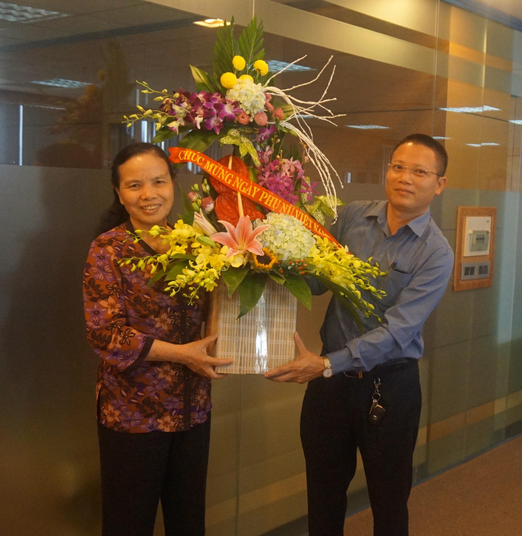 Đại diện lãnh đạo Tập doàn tặng hoa 20/10 cho cho chị em phụ nữ