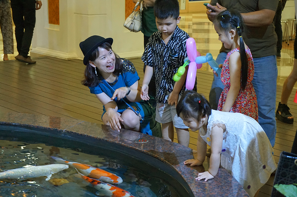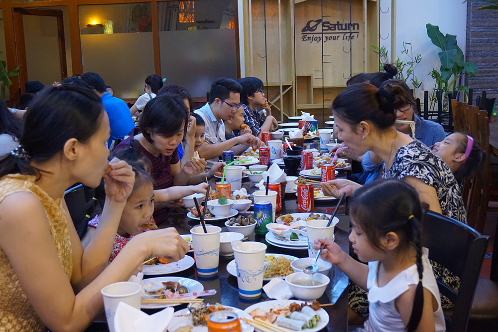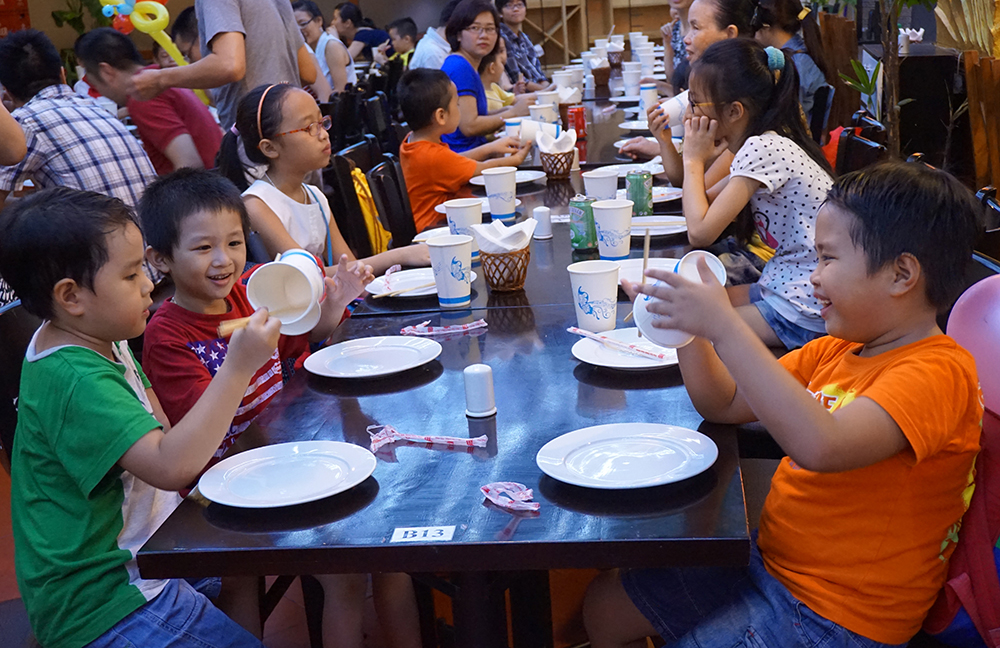 Tiệc giao lưu cho các bé được Công đoàn Tập đoàn tổ chức tại Nhà hàng Buffet Việt nằm tại Khu phố cổ Royal City. Tại đây, các bé được thưởng các món ăn tự chọn đa dạng, phong phú, mang đậm phong vị Việt.