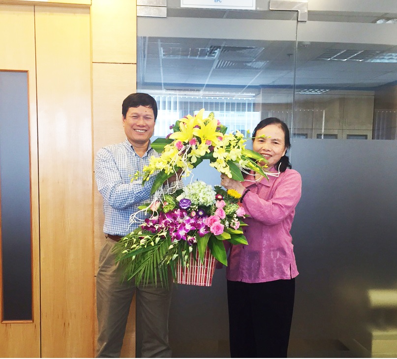 Đại diện lãnh đạo Tập doàn tặng hoa 20/10 cho cho chị em phụ nữ tại khu vực Hà Nội