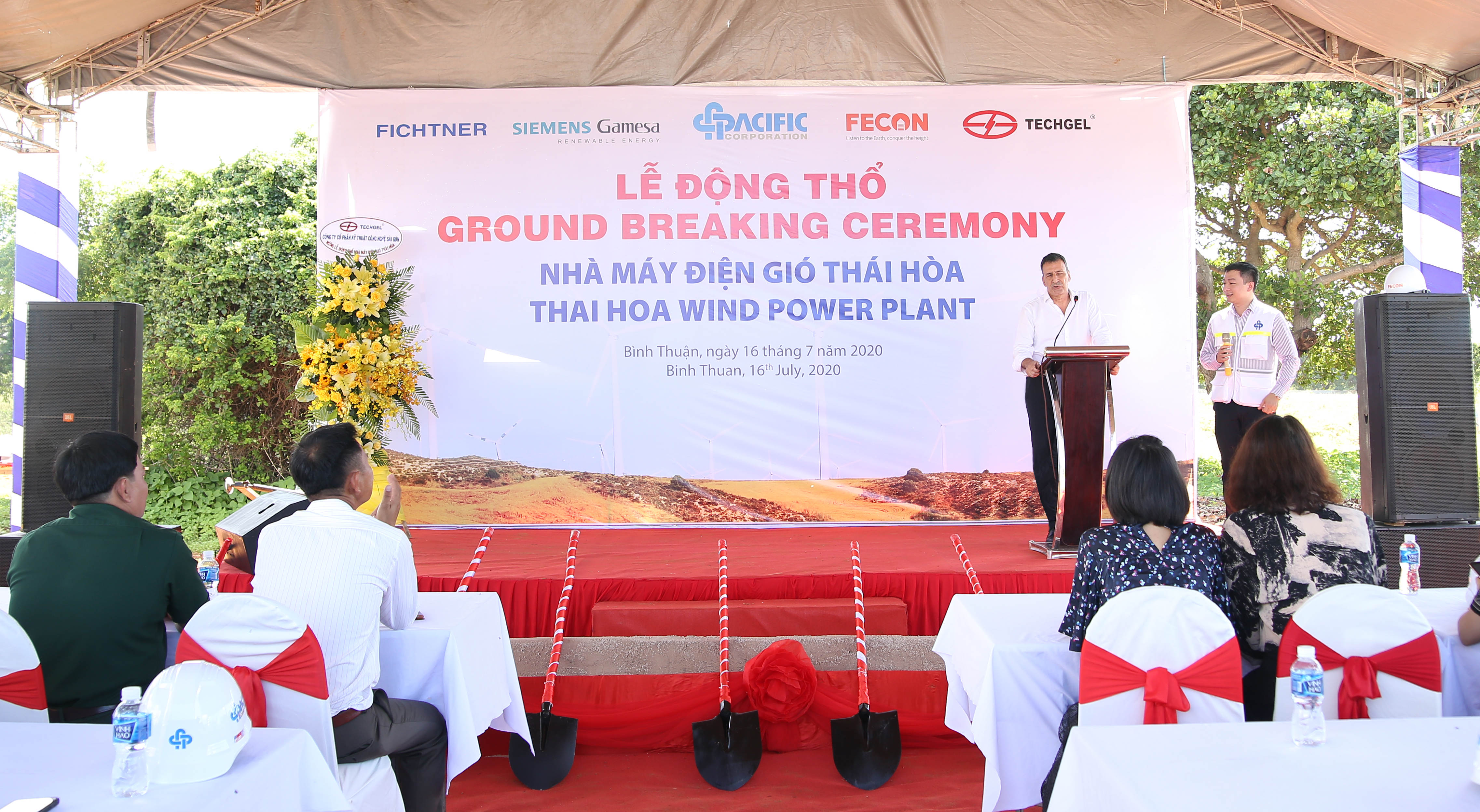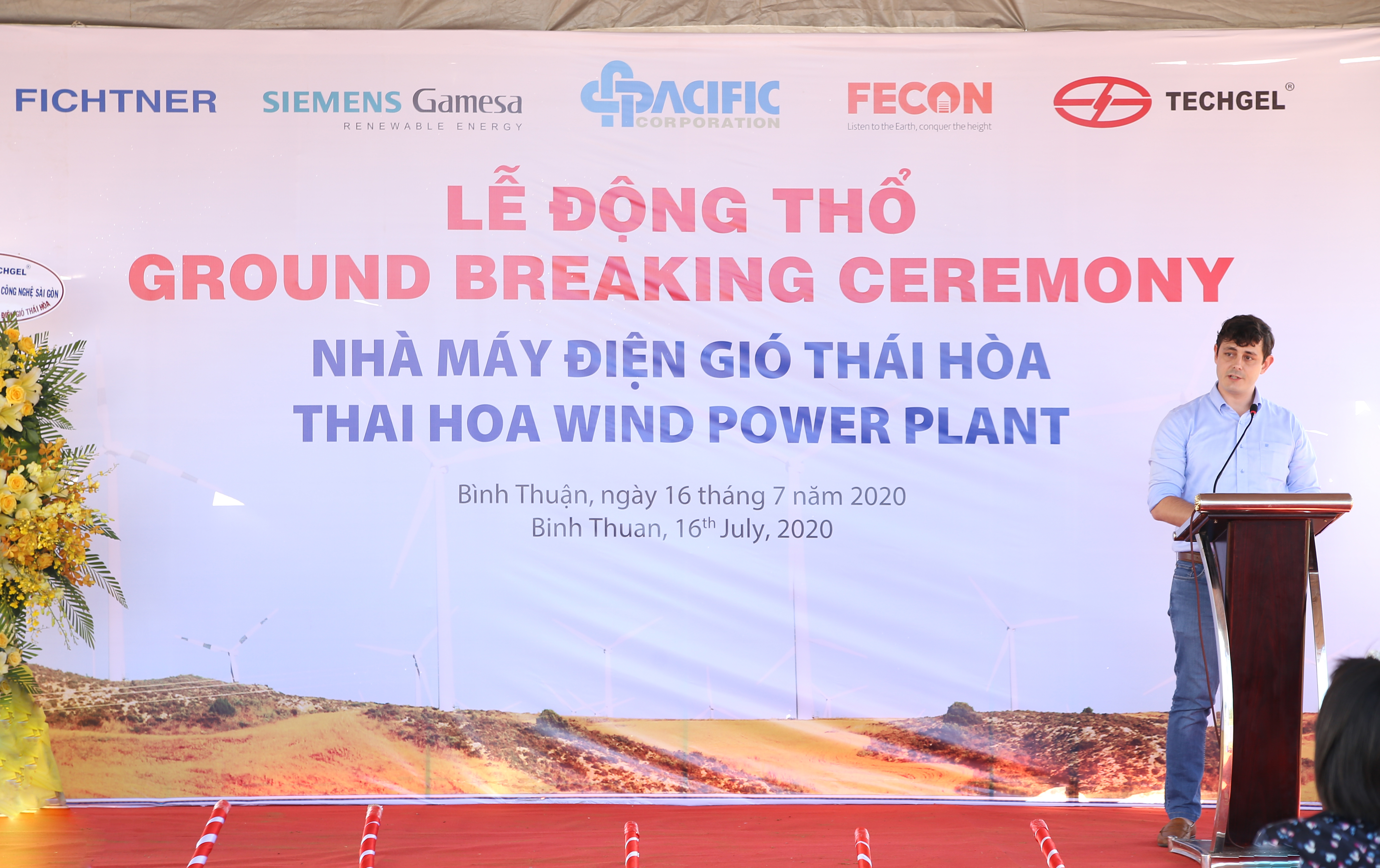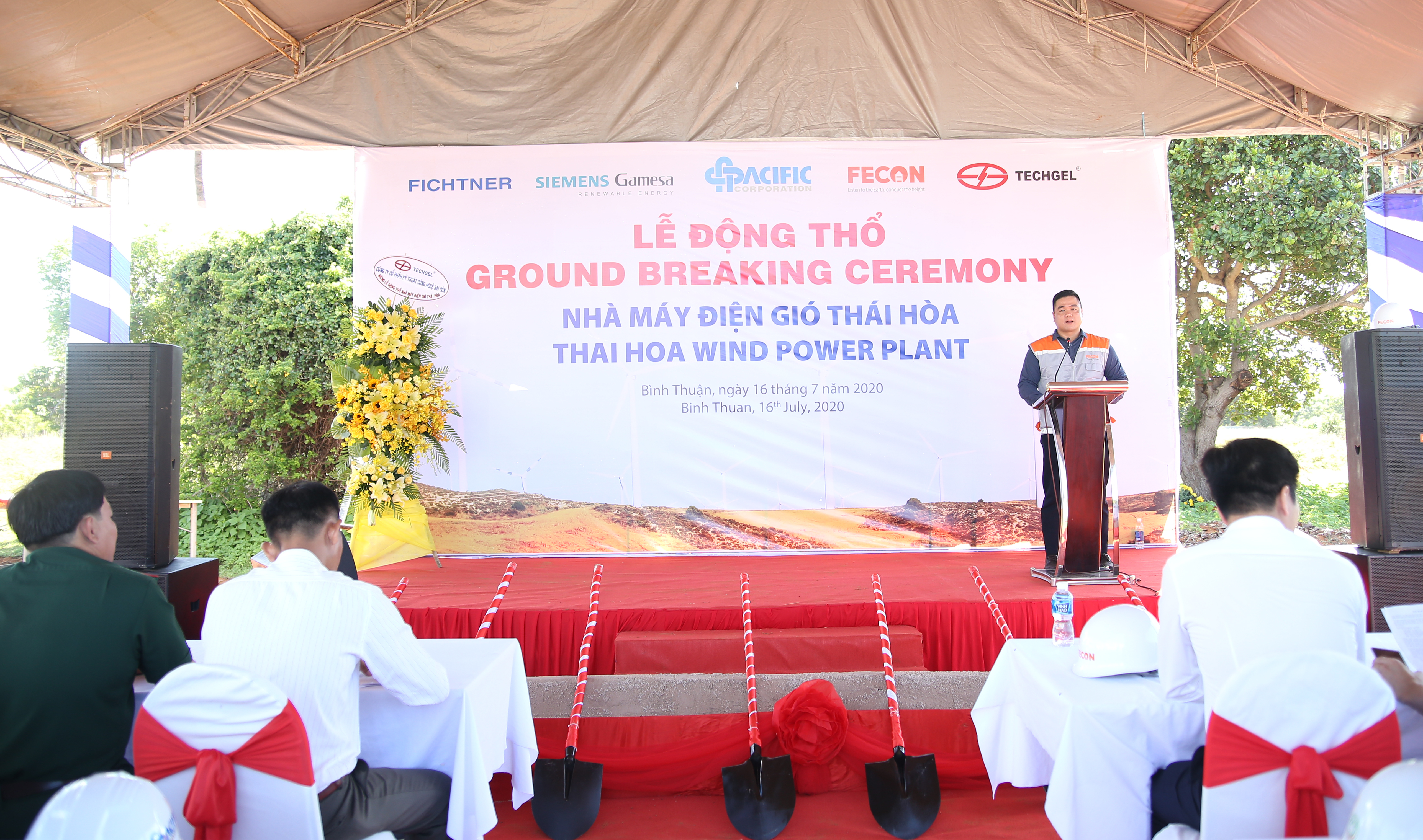 Phát biểu tại buổi lễ, ông Nguyễn Tiên Phong, Phó TGĐ Công nghiệp Tập đoàn Thái Bình Dương cho biết, Tập đoàn đã lựa chọn những đơn vị có uy tín, giàu kinh nghiệm thi công xây dựng Nhà máy Điện gió Thái Hòa. Trong đó, Công ty cổ phần FECON đảm nhiệm gói thầu thi công hạ tầng và các công trình xây dựng. Tập đoàn Siemens Gamesa Renewable Energy, đơn vị hàng đầu thế giới trong ngành năng lượng, cung cấp, lắp đặt, chạy thử tuabin. Công ty Fichtner đóng vai trò tư vấn quàn lý dự án và giám sát thi công dự án Nhà máy Điện gió Thái Hòa. Và Công ty Cổ phần Kỹ thuật công nghệ Sài Gòn thực hiện xây dựng, cung cấp và lắp đặt hạng mục cơ điện.