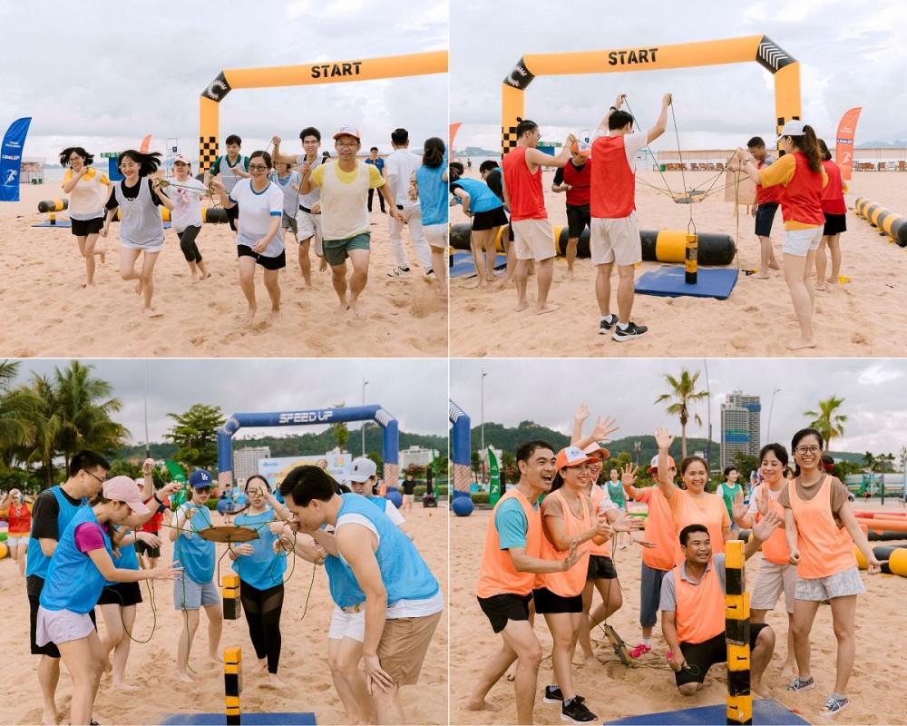 Không khí chương trình team building trên bờ biển Bãi Cháy cũng diễn ra hết sức náo nhiệt, các CBNV cháy hết mình trong các hoạt động diễn ra tại đây.