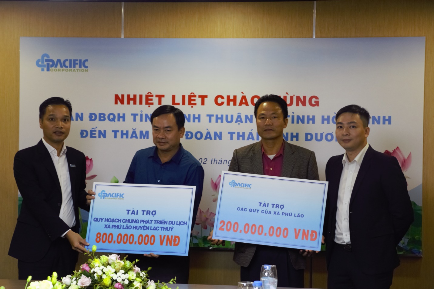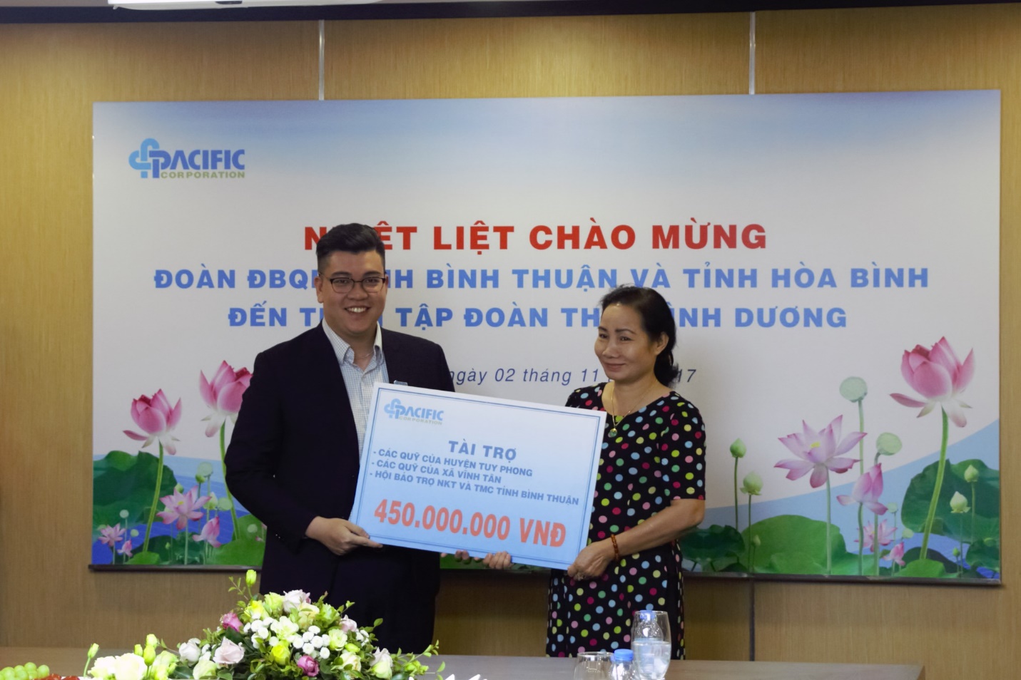 Tại buổi gặp mặt, các ĐBQH đã được nghe Tập đoàn Thái Bình Dương giới thiệu về Tập đoàn và các dự án Tập đoàn đang triển khai thực hiện; giới thiệu về bộ nhận diện thương hiệu cùng văn phòng làm việc của Tập đoàn. Nhân dịp này, Tập đoàn đã trao tài trợ cho một số đơn vị của tỉnh Bình Thuận (gồm UBND huyện Tuy Phong, UBND xã Vĩnh Tân và Hội Bảo trợ Người khuyết tật và trẻ mồ côi tỉnh Bình Thuận) và một số đơn vị của tỉnh Hoà Bình (gồm UBND huyện Lạc Thuỷ và UBND xã Phú Lão) nhằm đóng góp một phần nhỏ bé của mình vào việc phát triển du lịch và công tác an sinh xã hội của các địa phương.