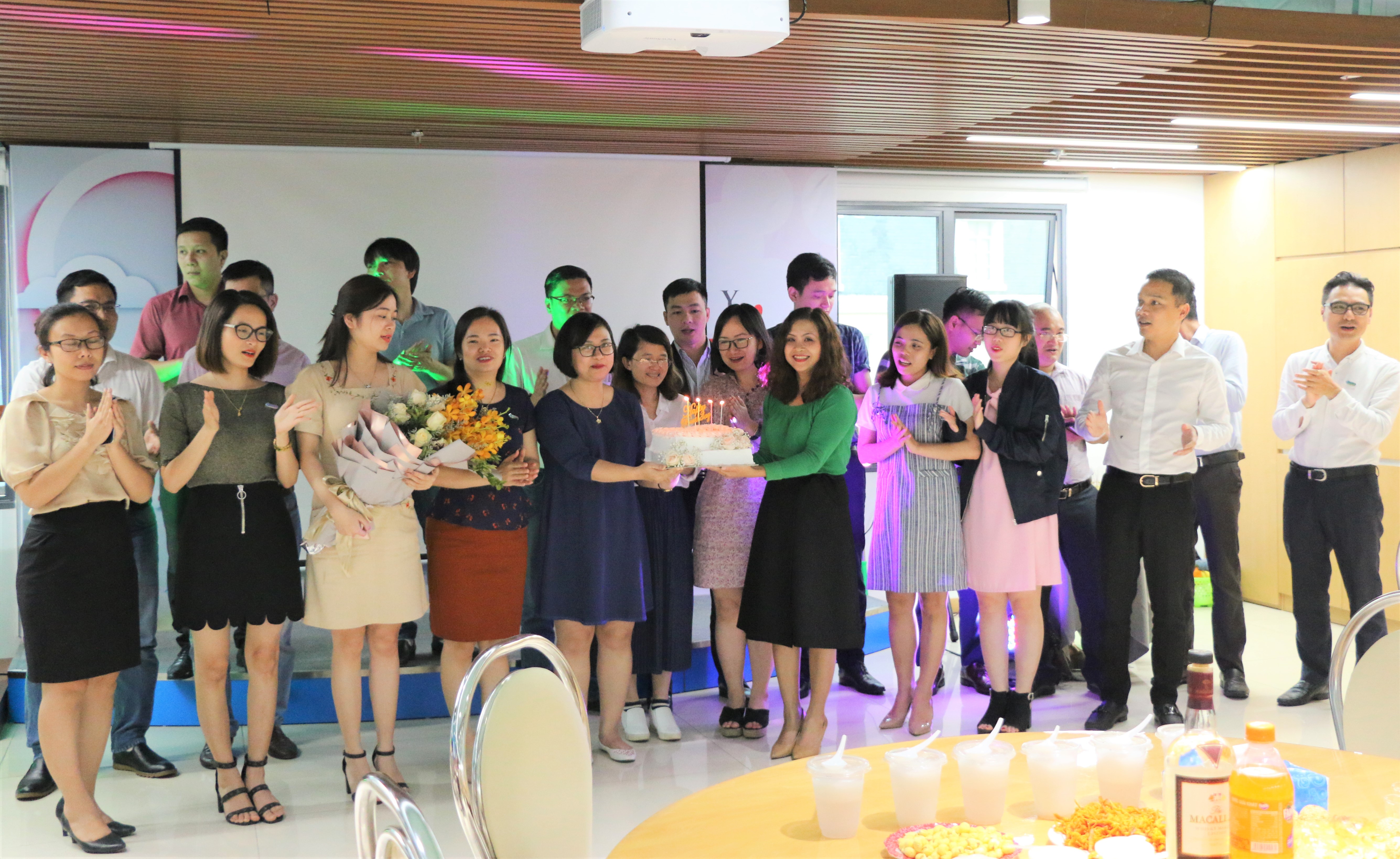 Ban lãnh đạo Tập đoàn cùng các cán bộ, nhân viên nâng ly chúc mừng sinh nhật