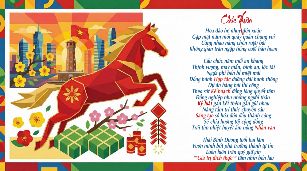 Phát biểu tại chương trình, Chủ tịch HĐQT Phan Tiến Dũng đã gửi lời chúc mừng năm mới, tri ân và cảm ơn sâu sắc tới những nỗ lực của toàn thể CBNV Tập đoàn Thái Bình Dương trong năm vừa qua, góp phần mang lại những kết quả tích cực, là bước đà mạnh mẽ để hướng tới một năm Bính Ngọ "vững chí vươn xa". Đồng thời, Chủ tịch cũng bày tỏ sự tin tưởng rằng, với sự đoàn kết, sáng tạo, hợp tác, nhân văn và kỷ luật, tập thể CBNV Thái Bình Dương sẽ vượt qua mọi thách thức, lập nên nhiều thành tích mới để hướng tới lễ kỷ niệm 25 năm thành lập Tập đoàn (4/7/2026).