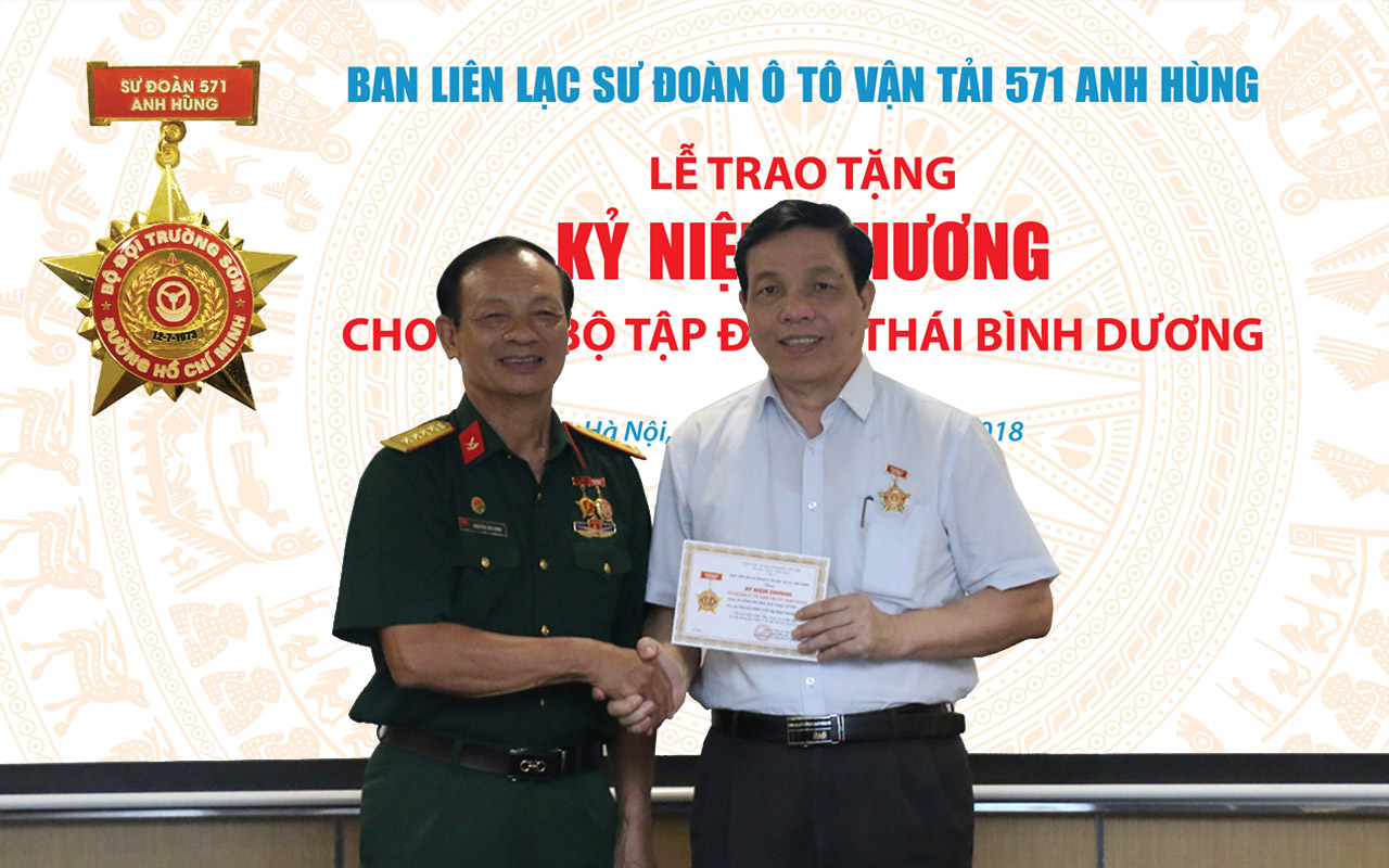 Chiều 10/8/2018, Ban Liên lạc Sư đoàn Ô tô vận tải 571 anh hùng đã trao kỷ niệm chương cho lãnh đạo và một số cán bộ, nhân viên Tập đoàn Thái Bình Dương vì đã có công góp phần xây dựng Hội truyền thống Sư đoàn.