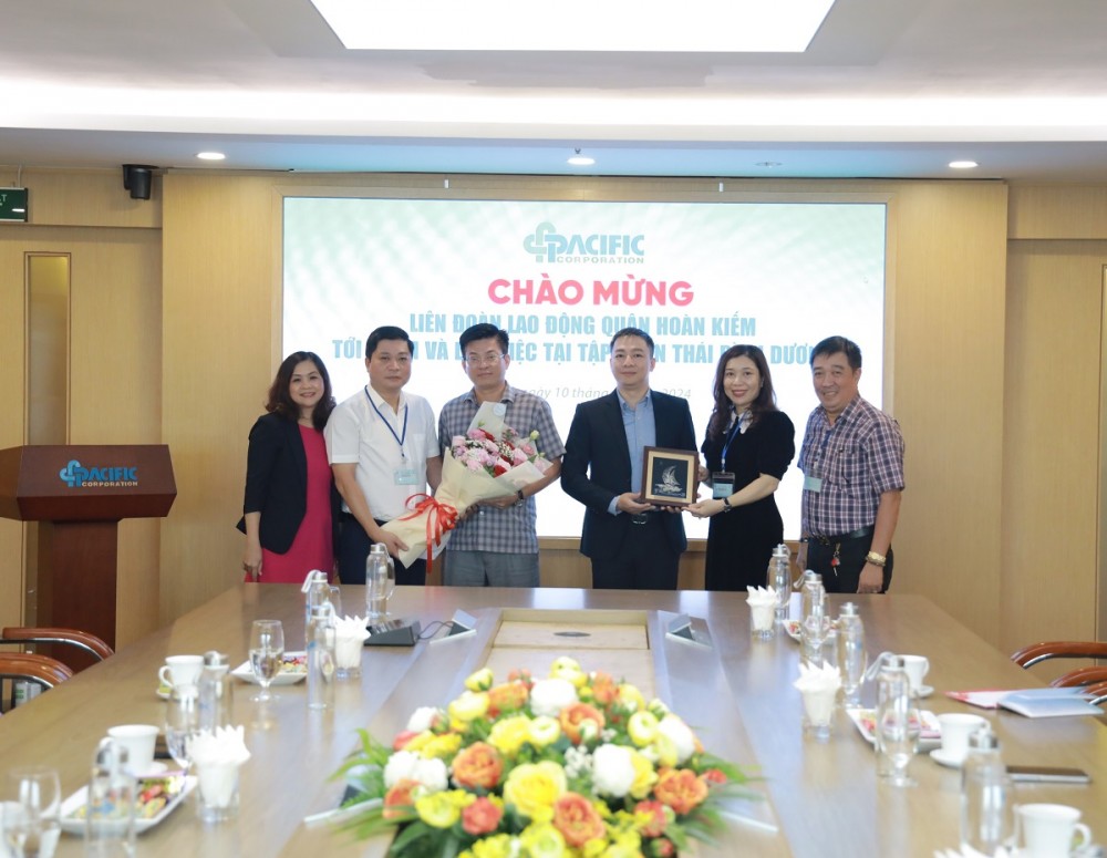 Đoàn công tác của LĐLĐ quận Hoàn Kiếm gồm đồng chí Lê Hoàng Thủy Vân - Quận ủy viên, Chủ tịch LĐLĐ quận làm trưởng đoàn, đồng chí Đinh Phú Cường - Phó Chủ tịch LĐLĐ quận và đồng chí Nguyễn Anh Dũng - Ủy viên Ban thường vụ LĐLĐ quận. Đại diện Tập đoàn Thái Bình Dương tham gia tiếp đón và làm việc với đoàn có ông Phan Tiến Dũng - Chủ tịch HĐQT Tập đoàn, ông Nghiêm Xuân Hùng - Tổng Giám đốc Khối Nội chính và bà Nguyễn Thị Toàn - Chánh Văn phòng HĐQT, Chủ tịch Công đoàn.