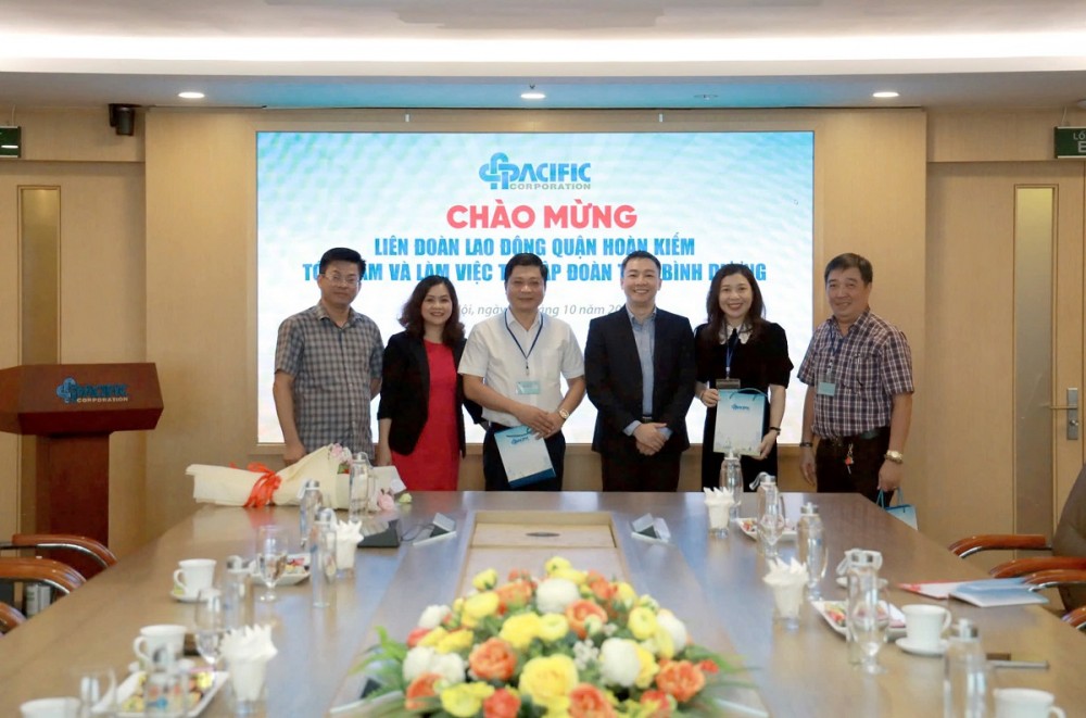 Tại buổi làm việc, đồng chí Lê Hoàng Thủy Vân - Quận ủy viên, Chủ tịch LĐLĐ quận Hoàn Kiếm thay mặt Đoàn công tác đã trao đổi, ghi nhận và đánh giá cao về các hoạt động của Tập đoàn Thái Bình Dương cũng như Công đoàn cơ sở đã triển khai và đạt được trong thời gian qua. Đồng thời, đồng chí đề nghị Ban lãnh đạo Tập đoàn tiếp tục quan tâm, đồng hành với tổ chức Công đoàn trong công tác chăm lo cho đoàn viên, người lao động; duy trì mối quan hệ lao động hài hòa, ổn định và tiến bộ trong doanh nghiệp.