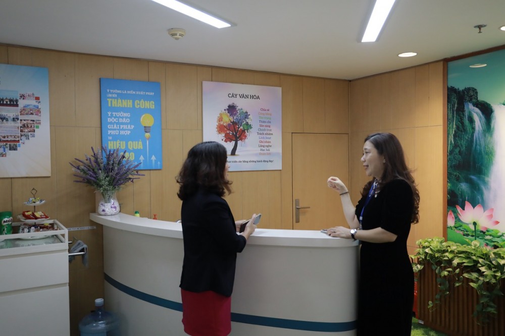 Nhân dịp này, Đoàn công tác của LĐLĐ quận Hoàn Kiếm cũng tham quan và trao đổi về một số mô hình đã và đang triển khai hiệu quả tại Tập đoàn Thái Bình Dương như không gian văn hóa; khu pantry văn phòng cho hoạt động ăn uống, nghỉ ngơi, thư giãn giữa giờ; bếp ăn tập thể... để chăm lo cho đời sống của đoàn viên, người lao động.