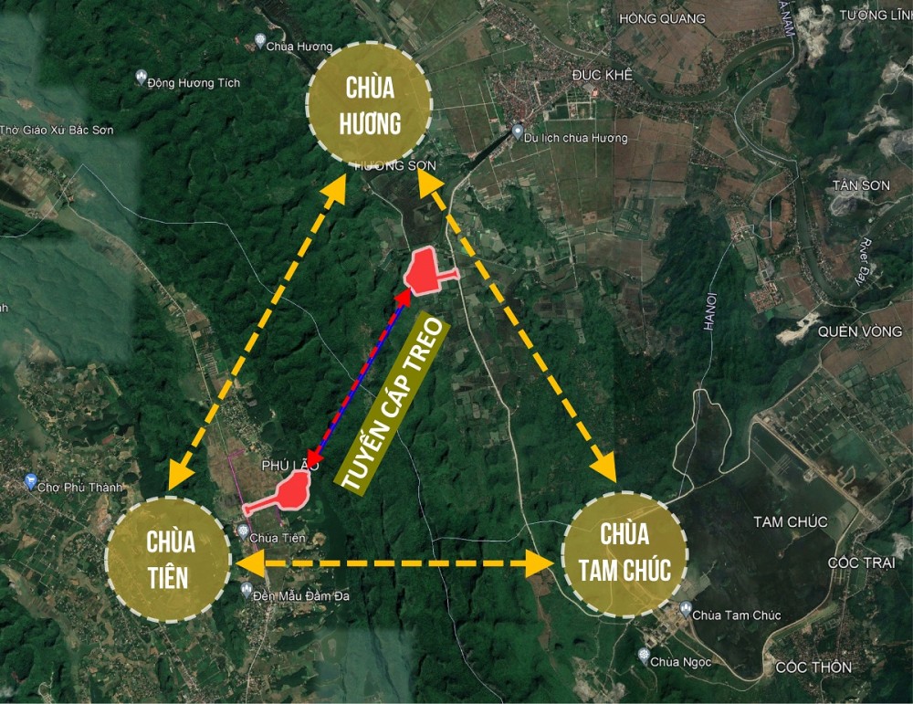 Đây là hình thức vận chuyển theo công nghệ tiên tiến nhất tính tới thời điểm hiện tại, được nhập khẩu đồng bộ từ Cộng hòa Áo. Dự án kết nối khu vực chùa Hương (tại xã Hương Sơn, huyện Mỹ Đức, thành phố Hà Nội) với chùa Tiên (tại xã Phú Nghĩa, huyện Lạc Thủy, tỉnh Hòa Bình), giúp rút ngắn thời gian đi lại giữa hai di tích từ 60 phút đường bộ xuống còn 10 phút, đáp ứng nhu cầu vận chuyển hành khách khoảng 1.500 - 2.000 lượt người/giờ, tương đương 12.000 - 16.000 lượt người/ngày.