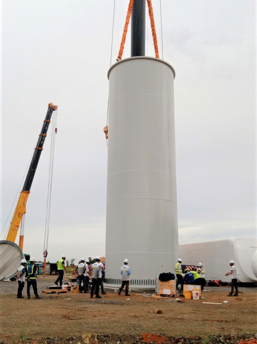 Nhà máy Điện gió Thái Hoà lắp đặt đốt trụ điện gió đầu tiên