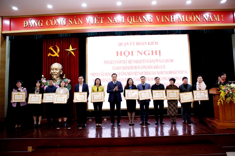 Phó Bí thư Thường trực Quận ủy Hoàn Kiếm trao khen thưởng cho các tập thể có thành tích trong thực hiện Nghị quyết số 20 của BCH TW Đảng