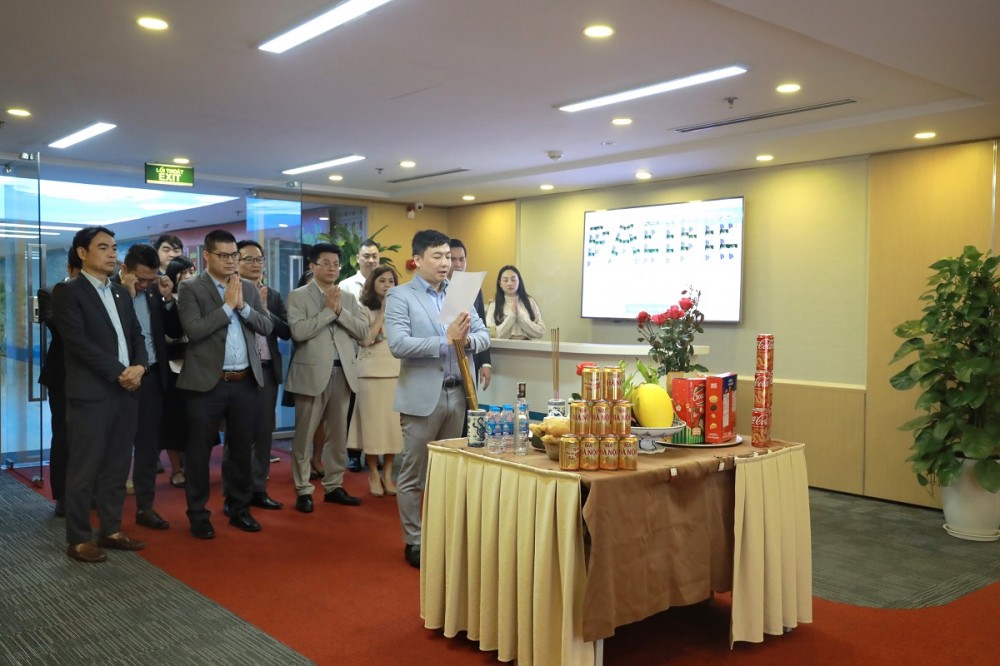 Ban lãnh đạo thực hiện nghi lễ cúng khai xuân tại Văn phòng Hà Nội
