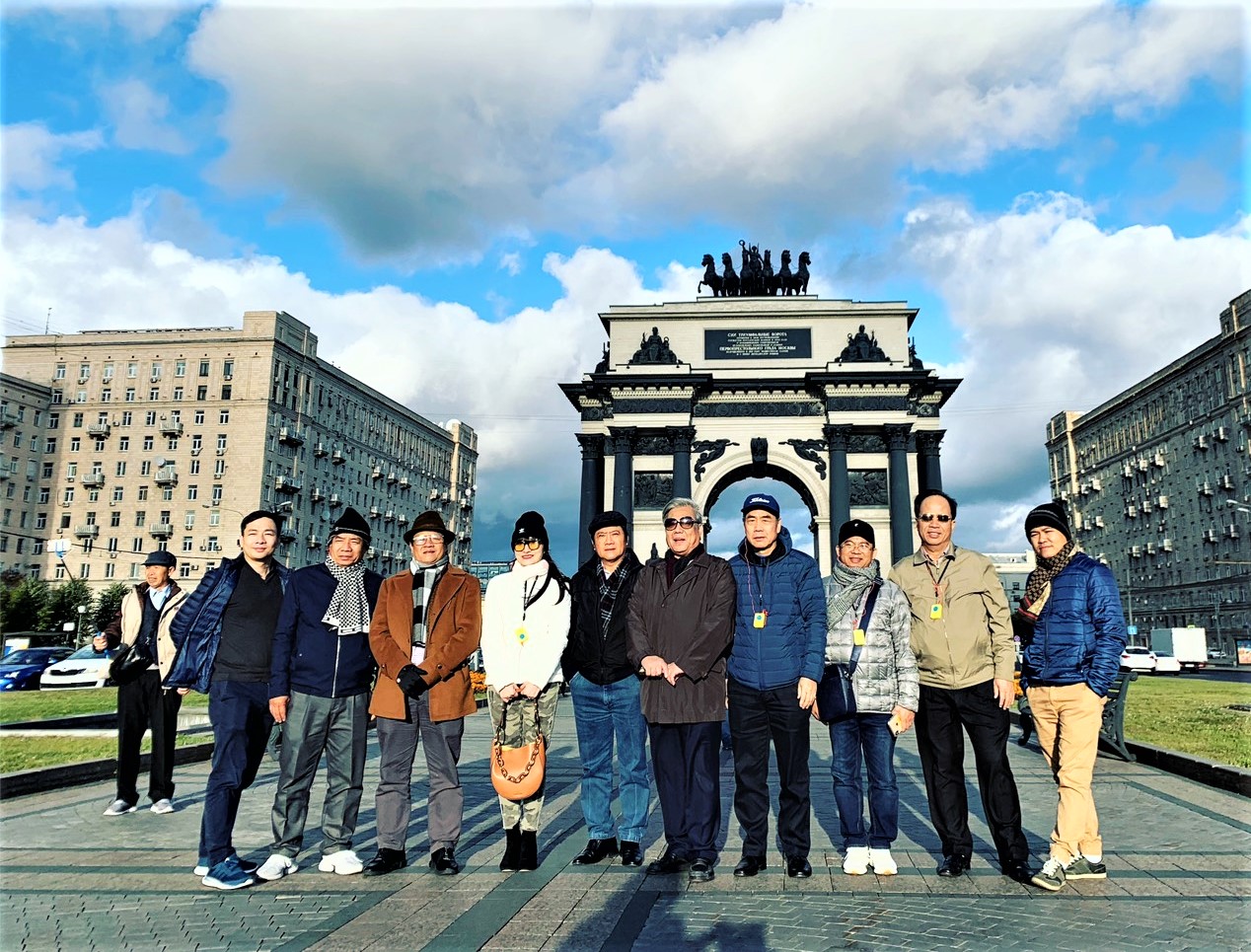 Đoàn chụp ảnh lưu niệm trước Khải Hoàn Môn