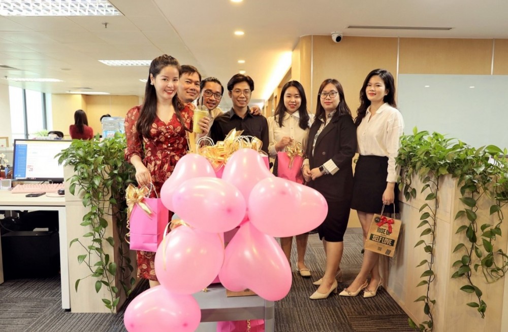Không khí tươi vui, đầm ấm ngày 8/3 tràn ngập khắp không gian làm việc của Tập đoàn, tất cả các chị em đều nhận được sự quan tâm, quà và những lời chúc từ chính những người đồng nghiệp nam.