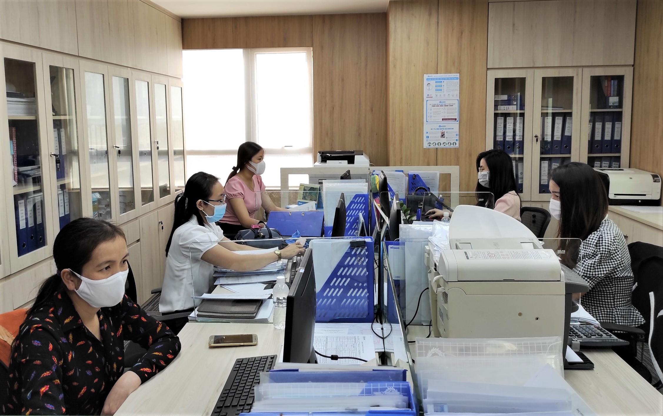 CB-NV tại văn phòng Bình Thuận thực hiện nghiêm túc việc đeo khẩu trang tại nơi làm việc