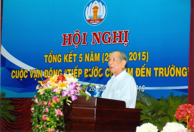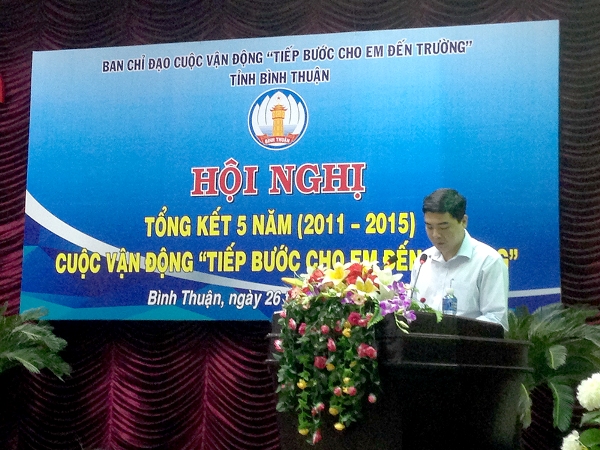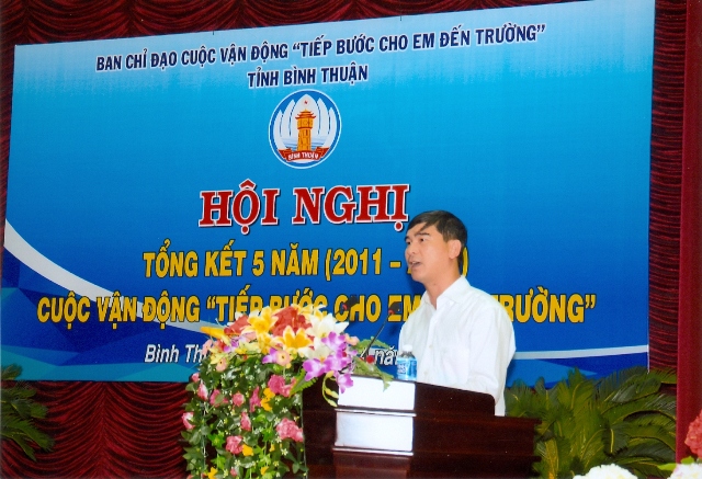 trình bày báo cáo Tổng kết 5 năm cuộc vận động “Tiếp bước cho em đến trường”