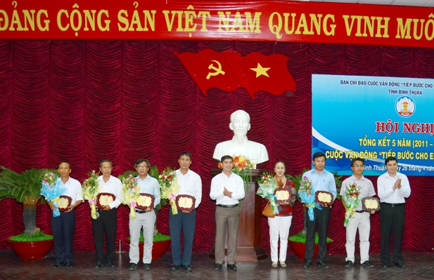 Tại Hội nghị, Ban Chỉ đạo tỉnh đã tuyên dương và trao tặng biểu trưng kỷ niệm cho các tổ chức, cá nhân tiêu biểu đã có nhiều đóng góp cho cuộc vận động “Tiếp bước cho em đến trường” ở tỉnh; trao Bằng khen của Chủ tịch UBND tỉnh và Giấy khen của Ban Chỉ đạo tỉnh cho cho các tập thể và cá nhân đã có nhiều thành tích xuất sắc trong 5 năm thực hiện cuộc vận động “Tiếp bước cho em đến trường” ở tỉnh.