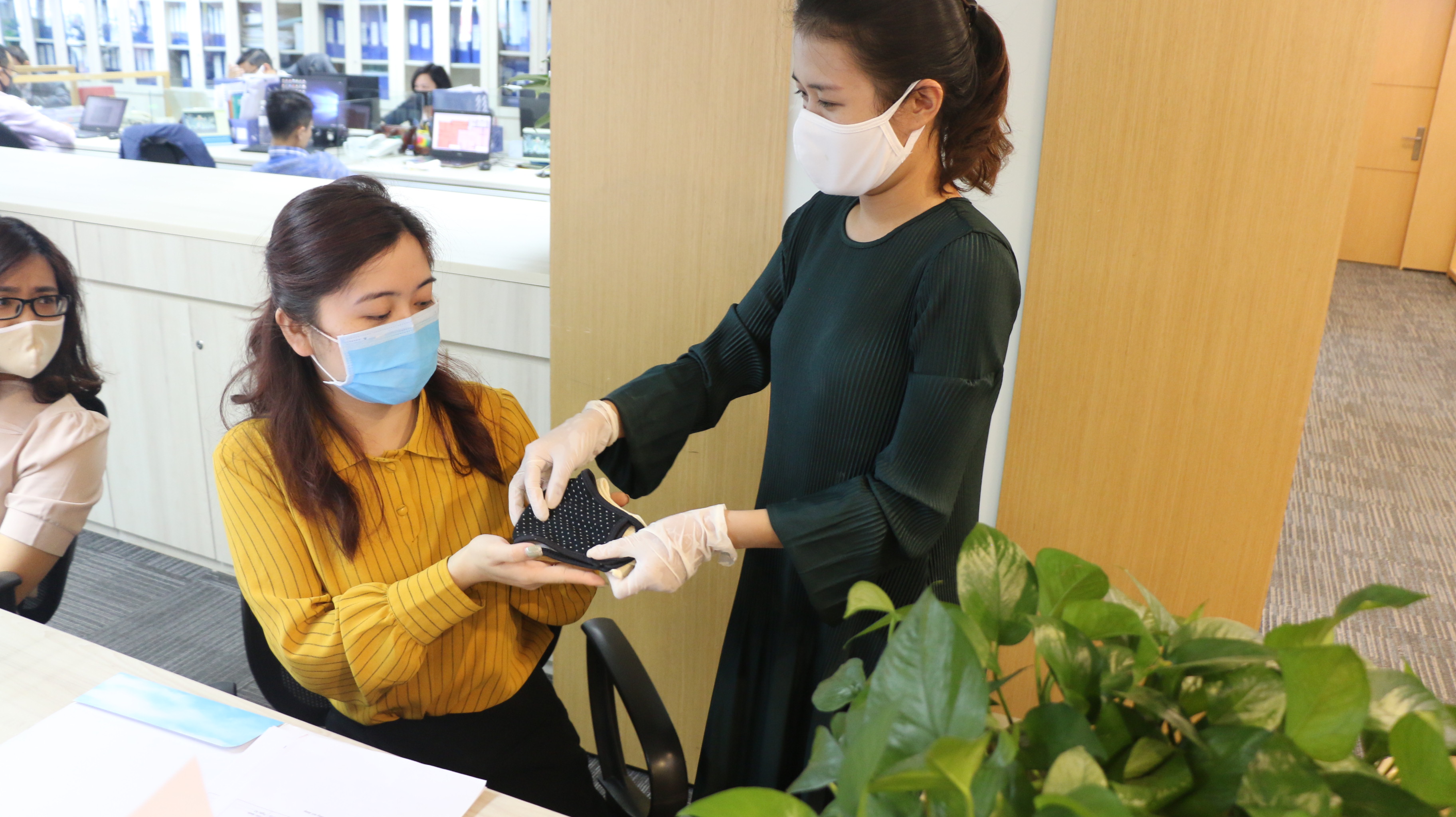 Mỗi cán bộ, nhân viên được phát 2 chiếc khẩu trang vải, có thể tái sử dụng, đảm bảo bảo vệ sức khoẻ