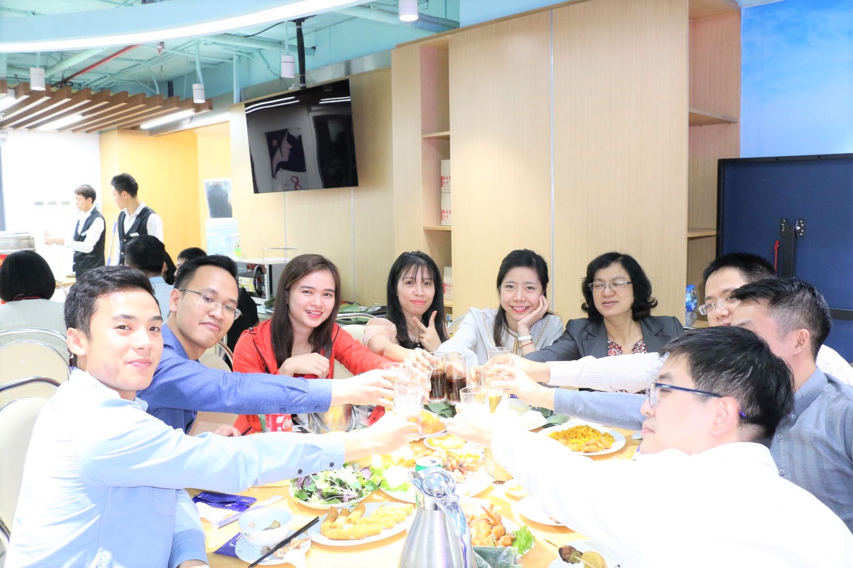 Cán bộ, nhân viên cùng nâng ly chúc mừng
