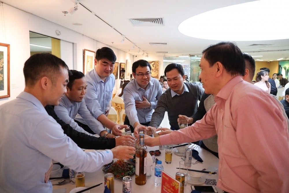 Sau Hội nghị tổng kết, buổi tiệc tất niên diễn ra trong không khí ấm cúng và thân tình tại Phòng tranh Tập đoàn.