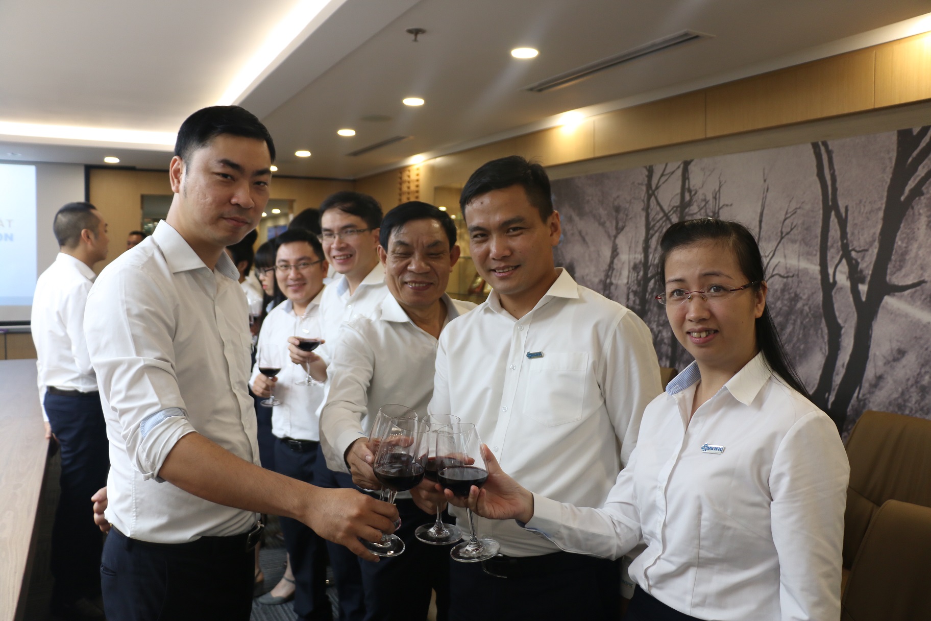 Ban lãnh đạo cùng toàn thể CB-NV nâng ly chúc mừng sinh nhật Tập đoàn