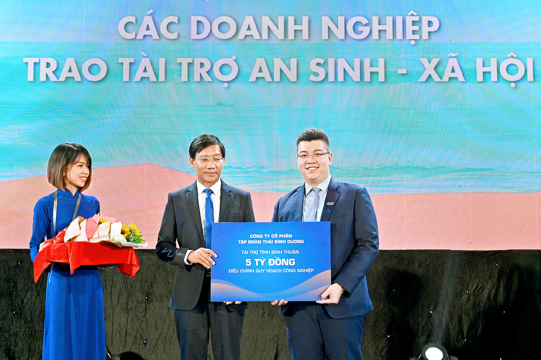 Không chỉ đồng hành cùng tỉnh Bình thuận trong lĩnh vực phát triển kinh tế, Tập đoàn Thái Bình Dương còn tài trợ nhiều tỷ đồng cho các chương trình an sinh xã hội của tỉnh như: Quỹ vì người nghèo, Quỹ khuyến học, chương trình “Tiếp bước cho em đến trường”, Hội Bảo trợ Người khuyết tật và trẻ mồ côi, Gia đình liệt sỹ có hoàn cảnh đặc biệt khó khăn, và Chương trình hỗ trợ các hộ phụ nữ nghèo khắc phục hậu quả thiên tai thông qua Quỹ cộng đồng phòng tránh thiên tai… Ngoài ra, Tập đoàn đã tài trợ một phần kinh phí để thực hiện việc lập Quy hoạch phát triển ngành công nghiệp Logistics của tỉnh Bình Thuận, góp phần thực hiện mục tiêu xây dựng và phát triển Bình Thuận trở thành một tỉnh công nghiệp - dịch vụ, du lịch theo hướng hiện đại, có cơ sở hạ tầng đồng bộ liên thông với cả nước và quốc tế.