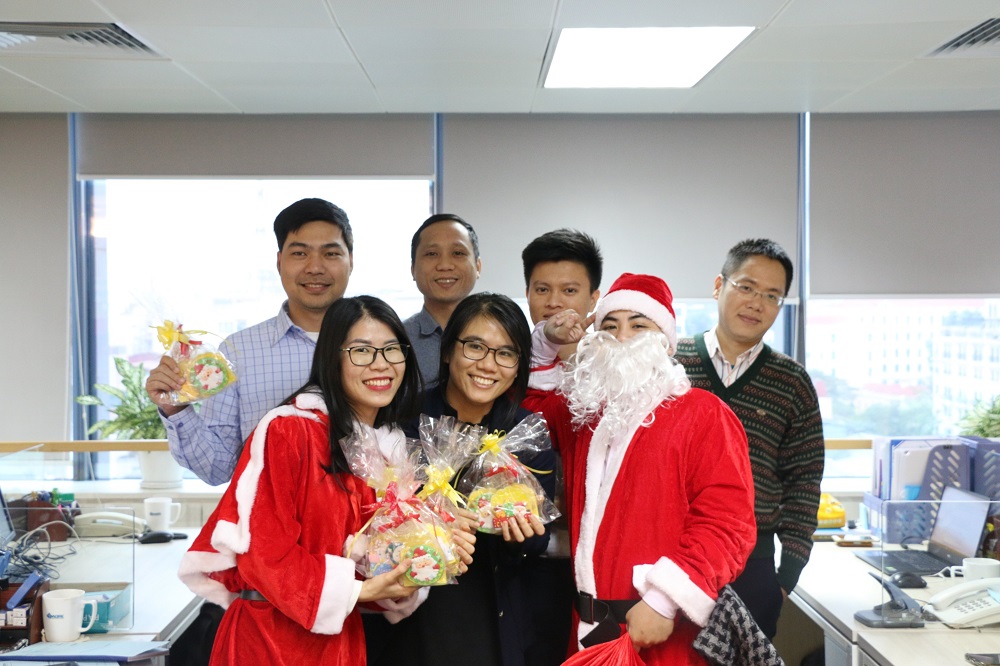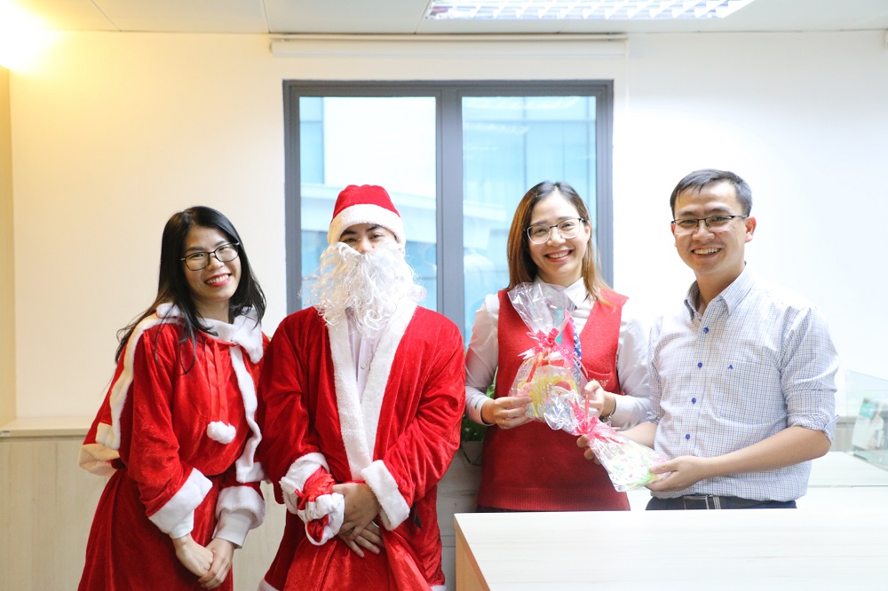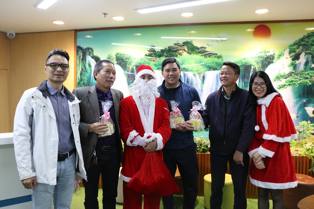 Trong tiếng nhạc rộn ràng, ông già Noel mang đến những món quà xinh xắn gửi tặng tới các CB - NV Tập đoàn cùng lời chúc một mùa Giáng sinh an lành, hạnh phúc.