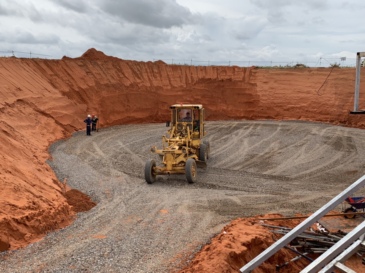 Hiện tại nhà thầu đã hoàn thành đào hố móng, thi công lớp đá móng loại 2 (D37.5) dày 30 cm tại trụ WTG18, và đang triển khai đào móng trụ WTG14.