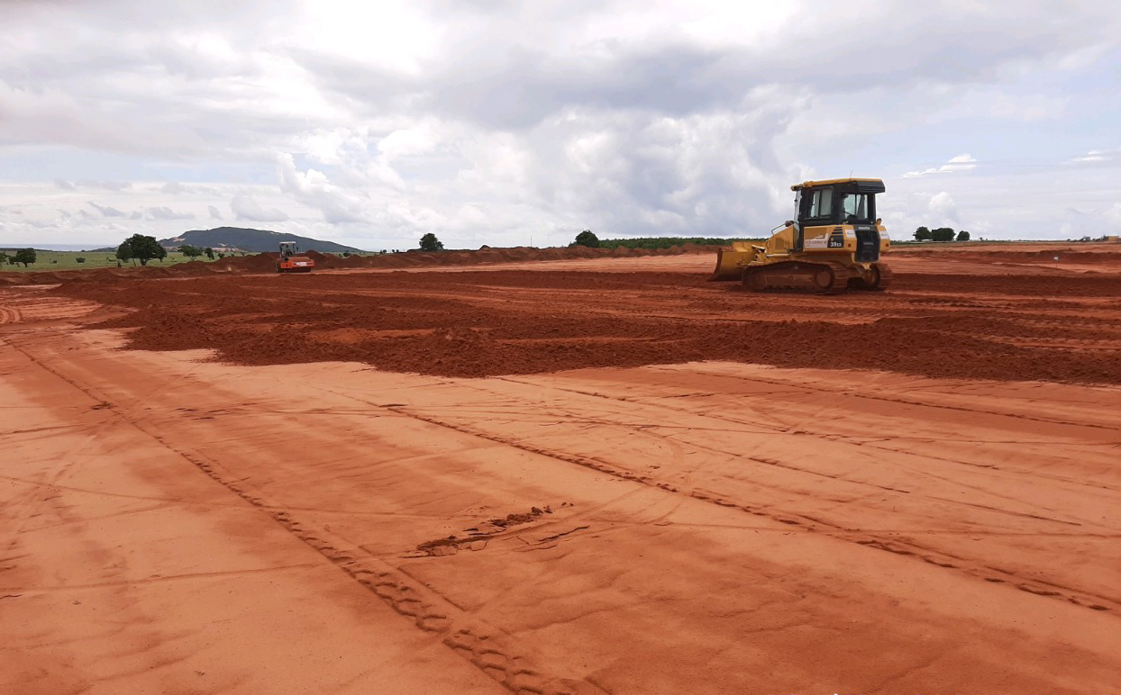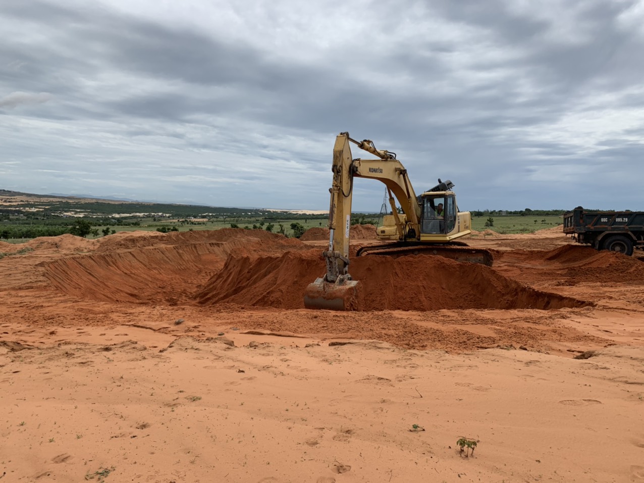 San gạt lớp cát đắp nền bãi trạm biến áp. Ảnh: Hồ Trọng