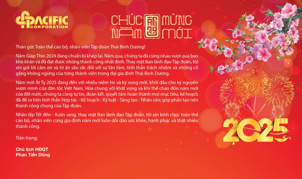 Thư chúc Tết Ất Tỵ của Chủ tịch HĐQT Tập đoàn Thái Bình Dương