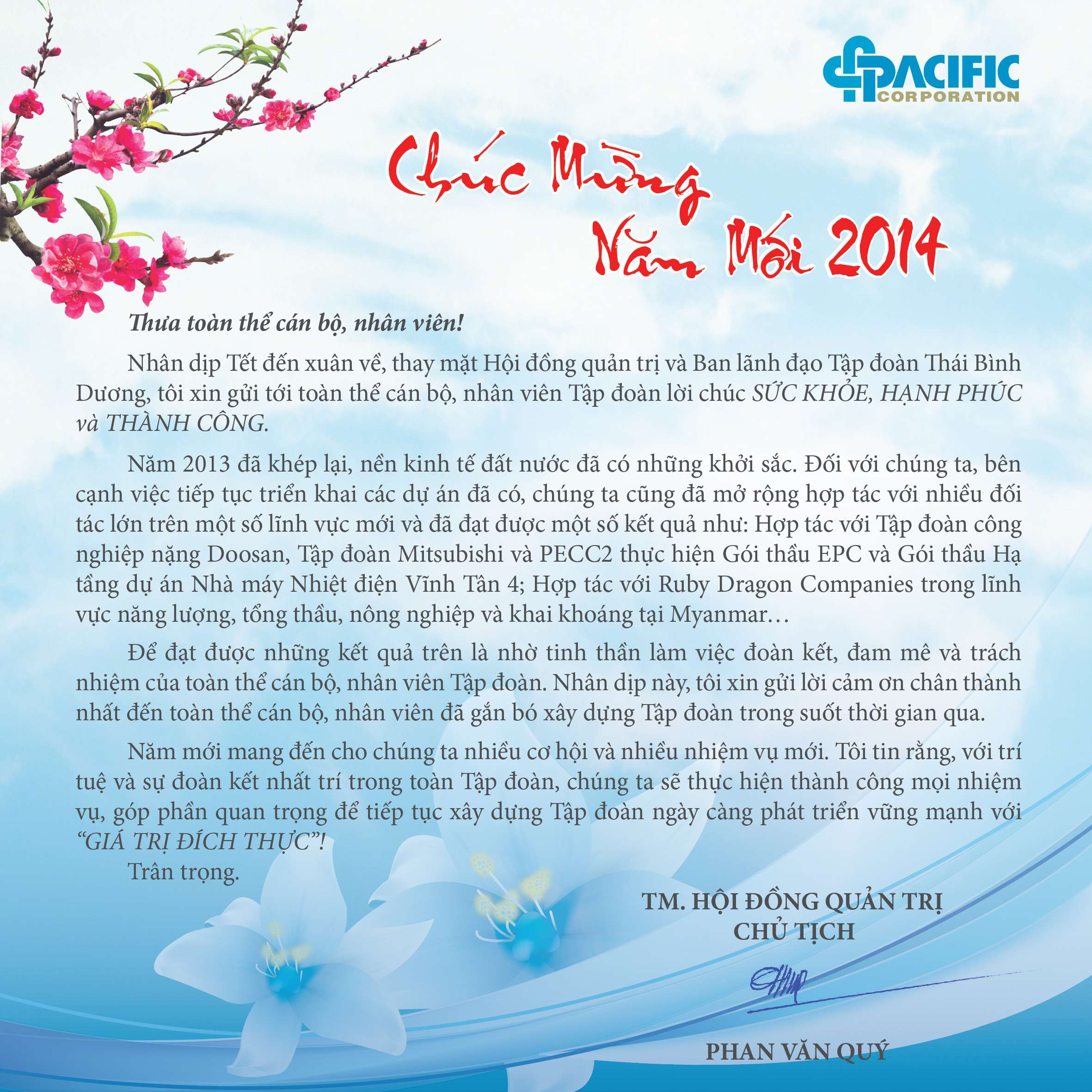 Thư chúc tết của Chủ tịch Tập đoàn