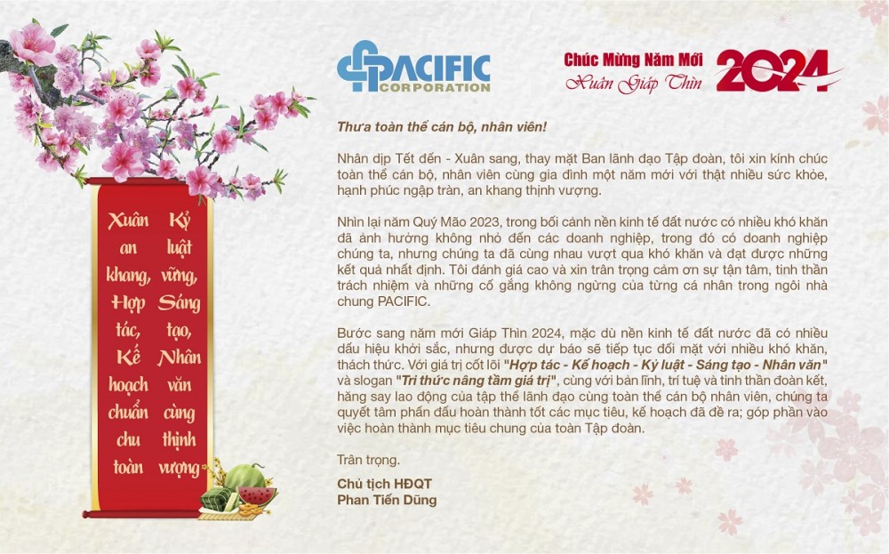 Thư chúc Tết Giáp Thìn của Chủ tịch Tập đoàn