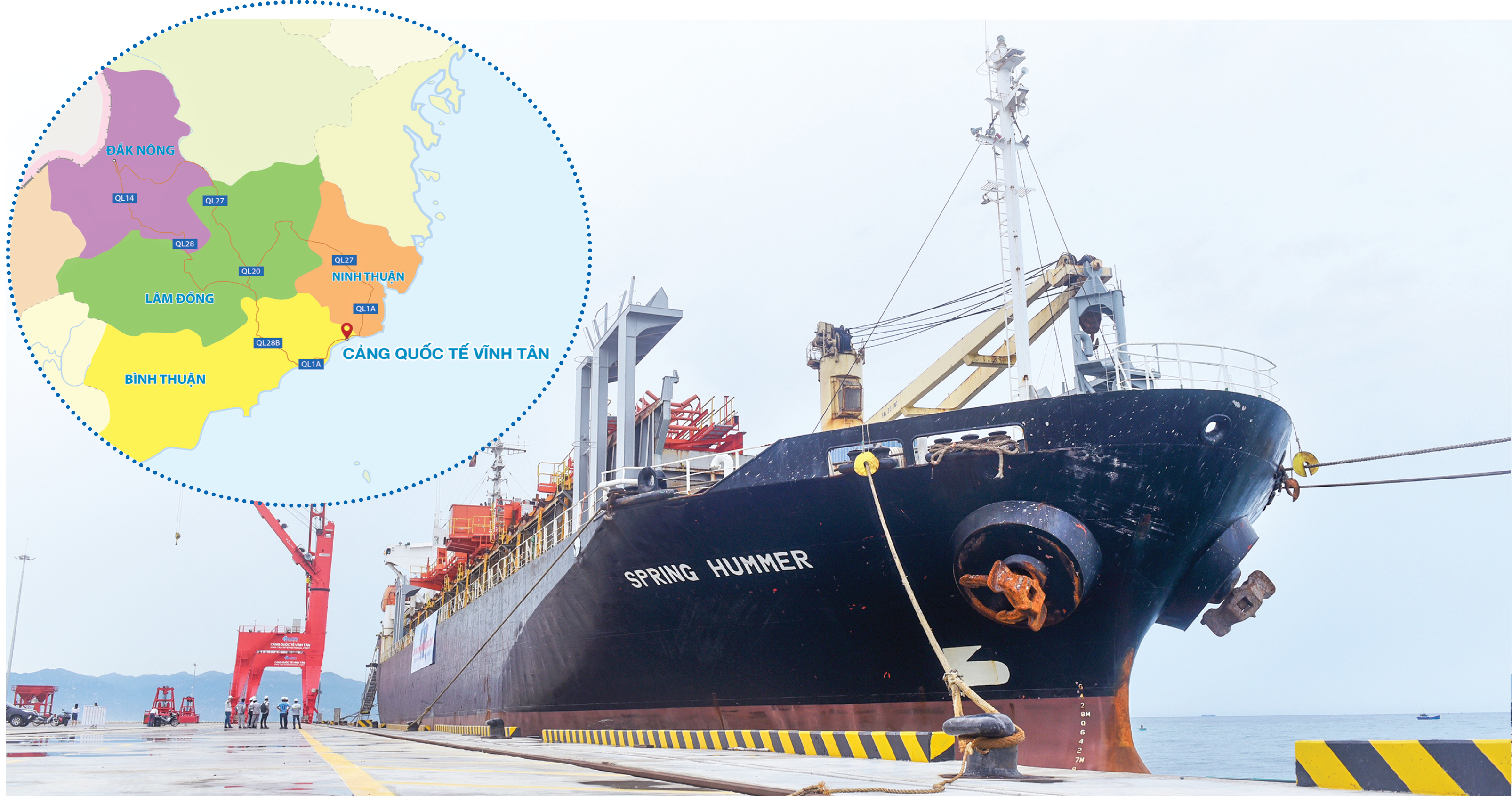 Với vị trí thuận lợi, Cảng Quốc tế Vĩnh Tân góp phần kết nối tỉnh Bình Thuận, tỉnh Ninh Thuận với Tây Nguyên và Nam Trung Bộ, với hơn 50 khu công nghiệp, cụm chế xuất lớn nhỏ.