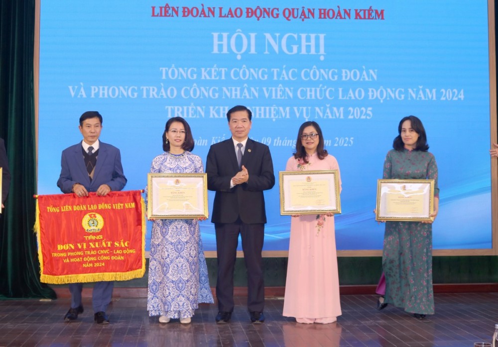 Sáng nay 09/01/2025 tại Trung tâm chính trị quận Hoàn Kiếm, Liên đoàn Lao động quận Hoàn Kiếm đã tổ chức Hội nghị tổng kết công tác công đoàn và phong trào công nhân, viên chức, lao động (CNVCLĐ) năm 2024, triển khai nhiệm vụ năm 2025.