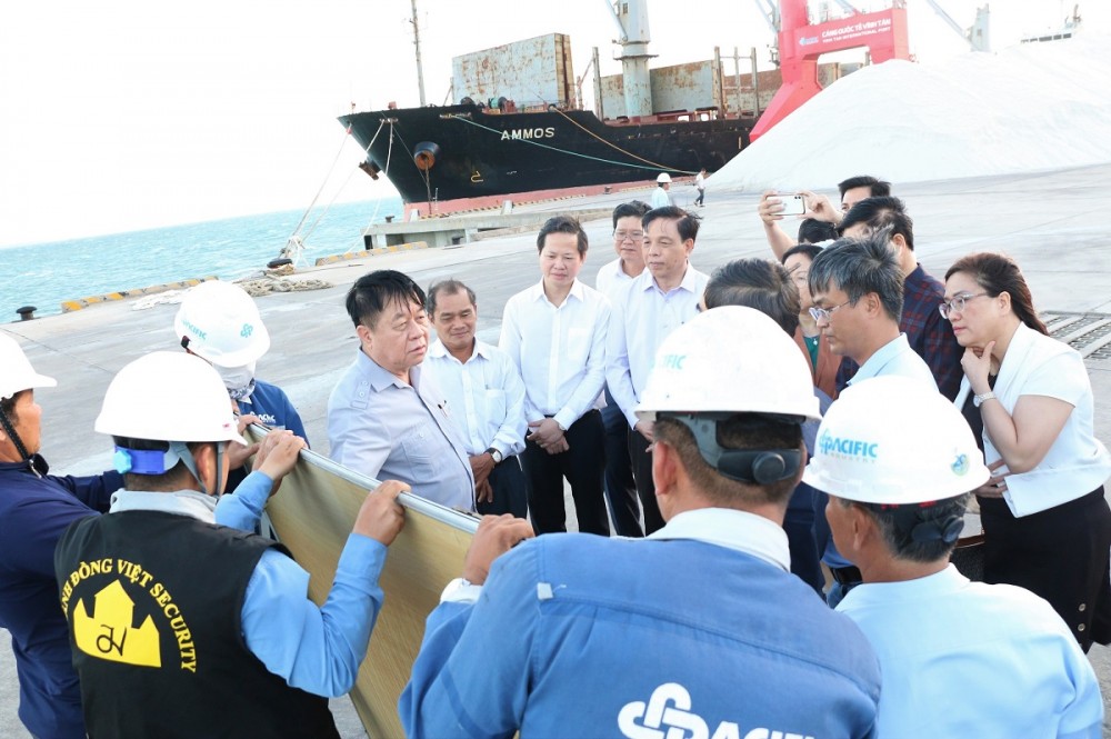 Nhân chuyến làm việc tại Bình Thuận, chiều ngày 22/2, đồng chí Nguyễn Trọng Nghĩa - Bí thư Trung ương Đảng, Trưởng Ban Tuyên giáo Trung ương cùng đoàn công tác đã đến thăm Cảng Quốc tế Vĩnh Tân tại huyện Tuy Phong. Cùng đi với đoàn có đồng chí Dương Văn An - Ủy viên Ban chấp hành Trung ương Đảng, Bí thư Tỉnh ủy Bình Thuận; đồng chí Đoàn Anh Dũng - Phó Bí thư Tỉnh ủy, Chủ tịch UBND tỉnh.