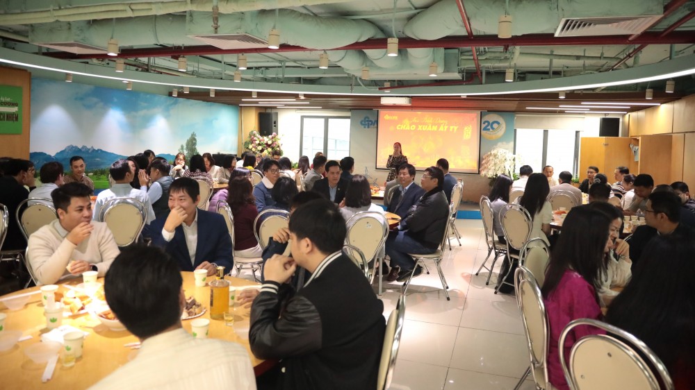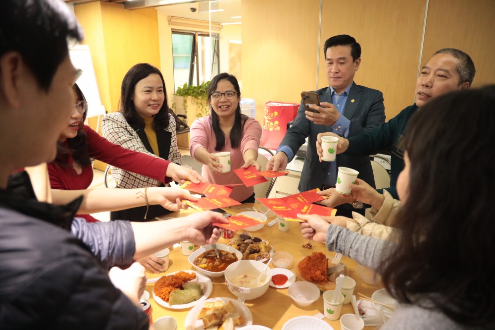 CBNV Tập đoàn cùng nâng ly chúc mừng năm mới và nhận lì xì từ Ban lãnh đạo Tập đoàn